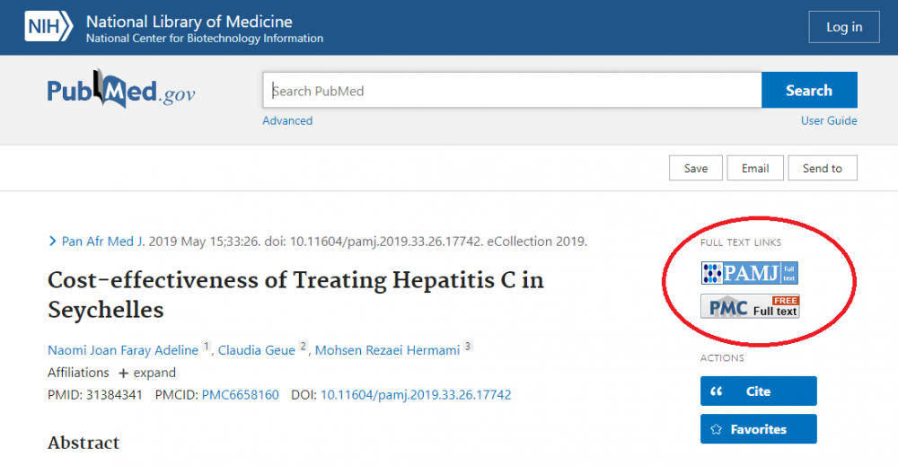 All abstracts come with a link to the entry in PubMed. You can click through to discover whether you can download the PDF of the full text paper via the publisher’s site.
