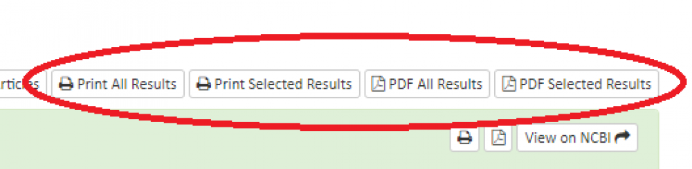 The icons at the right of the citation title allow you to export all the abstracts identified by the search, or those you have selected, as a .txt file that can be uploaded into citation manager software using the PubMed filter: