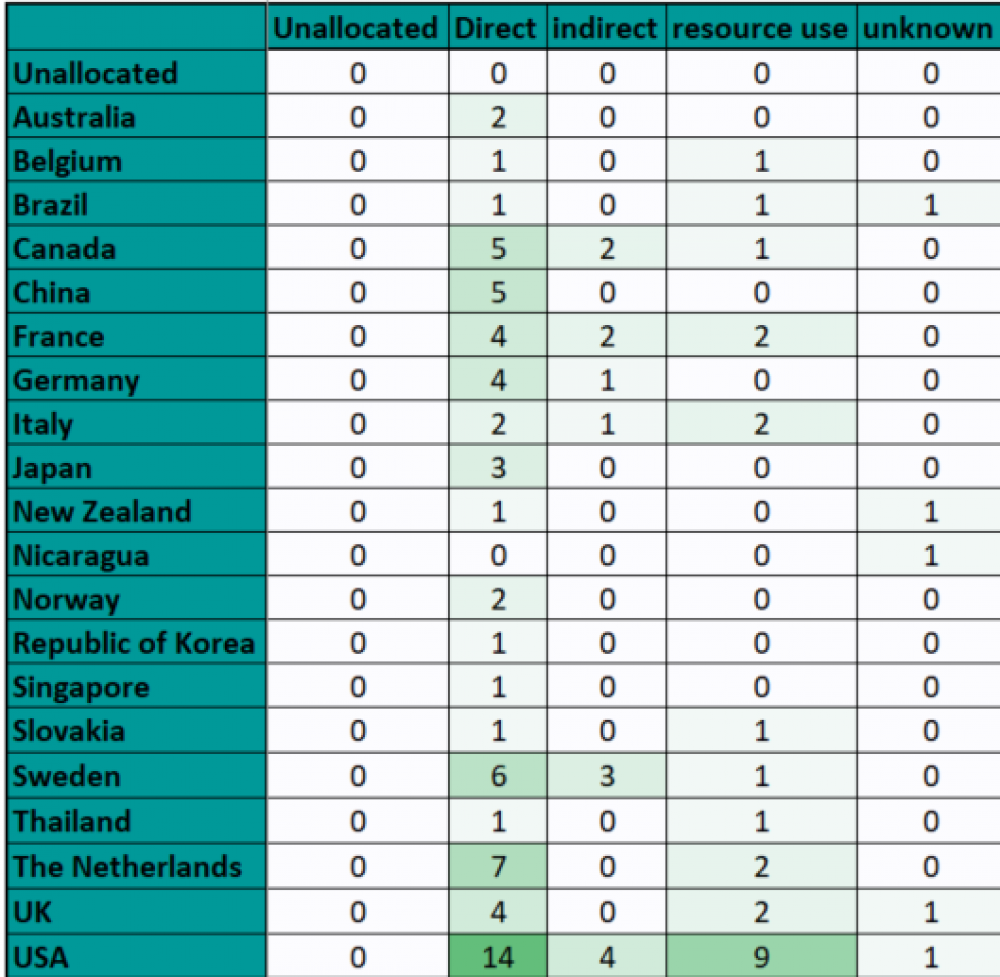 Studies reporting cost and resource use in AML: geographical location by information reported.