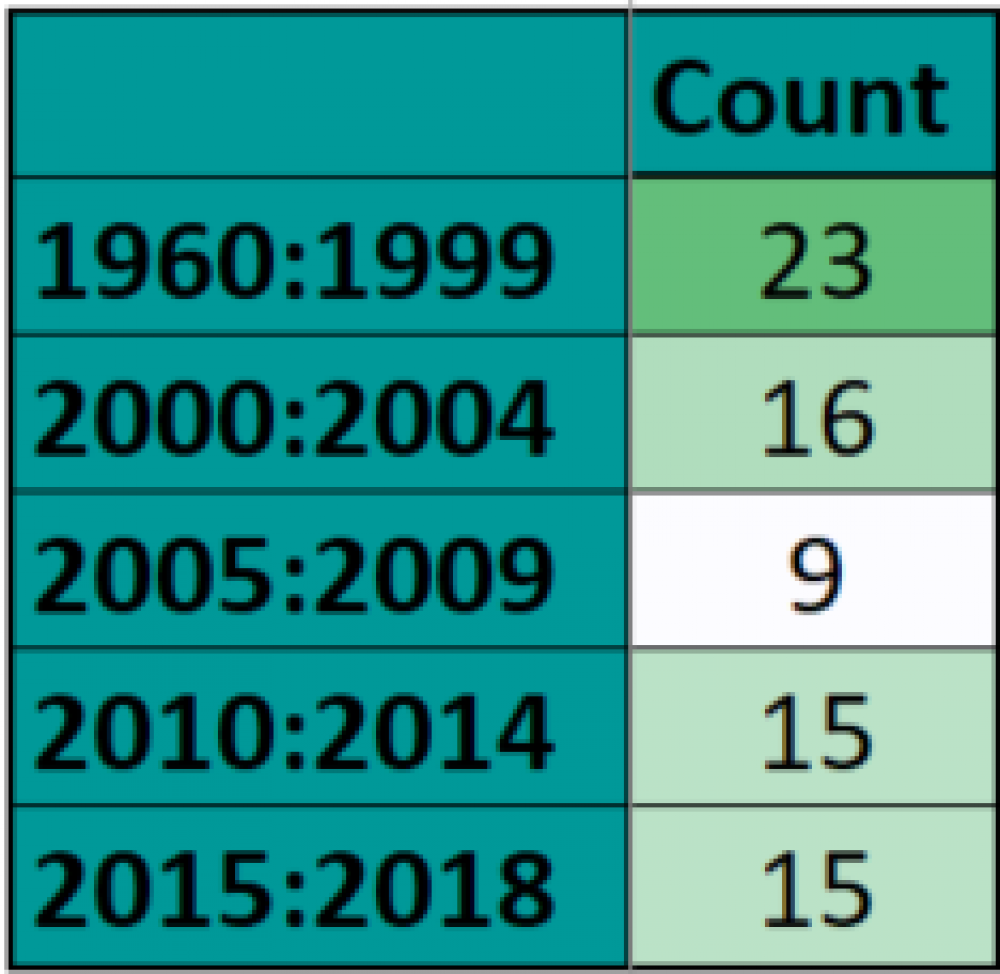 23 papers were published before 2000, 25 between 2000 and 2009, and 30 between 2010 and 2017.