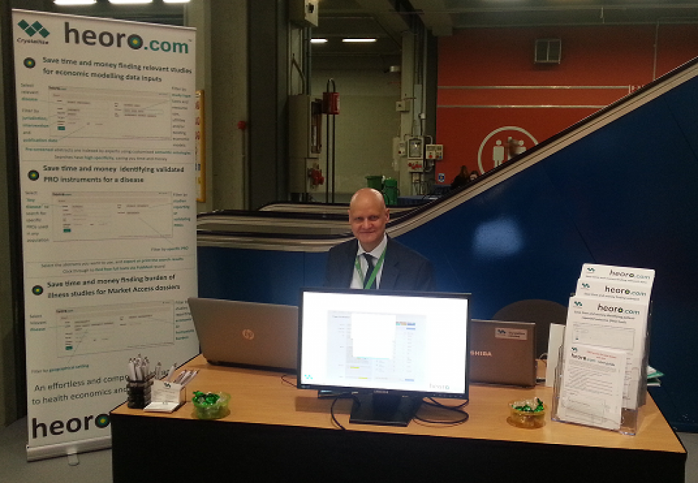 Crystallise's new HEOR database heoro.com, a collection of pre-screened and indexed studies on the humanistic and economic burden of disease, launched very successfully for beta testing at the ISPOR congress last week. The heoro.com database is based on a systematic search of the PubMed database for studies relevant to quality of life, costs and resources associated with diseases, economic evaluations of interventions to manage them, and mortality trends. A beta version was launched at the ISPOR European Congress in Milan last week, and proved to be very popular with attendees and exhibitors. Crystallise's Chris Martin at ISPOR 2015