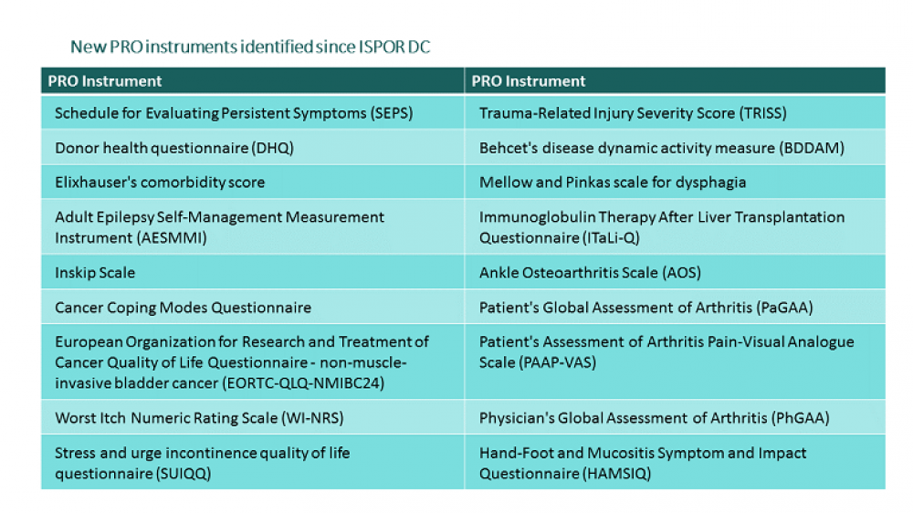 The new heoro.com database launched successfully at ISPOR DC with an ontology of the 4,250 PRO tools identified from more than 22,200 PRO study abstracts. In the two weeks since then, we've added another 18 instruments to the ontology. We developed our ontology of patient- and clinician-reported instruments from an analysis of over 22,000 relevant abstracts within the heoro.com database. Our automated indexing software links newly published abstracts to the instruments already in the ontology, and our human experts add new items we identify when we sign off the paper moderation. New PRO instruments added to the ontology since ISPOR DC are shown in the table below.