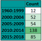 The search identified that the number of studies involving the measurement of fatigue has increased over time, from 12 studies conducted before the year 2000, up to 223 studies since the year 2010.